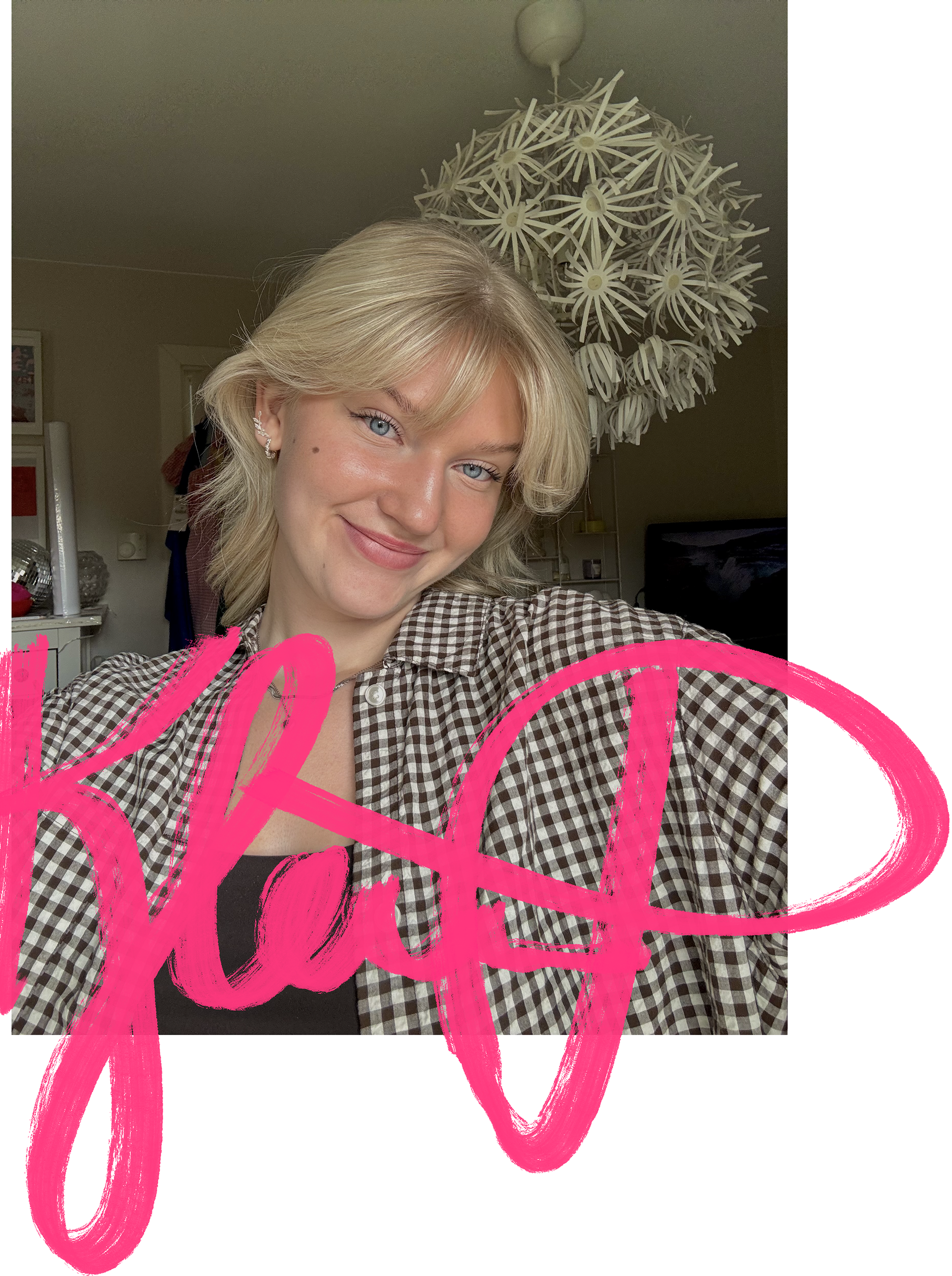 Idag studerar jag kandidatprogrammet i Grafisk design och webbutveckling vid Högskolan Dalarna, med examen våren 2026. Jag tycker om att arbeta där färg, form och typografi får ta tid. Jag kan fastna i färgkombinationer i timmar, jämföra nyanser, justera kontraster och låta helheten växa fram långsamt. Och förresten – ett riktigt trevligt mönster kan jag alltid stanna upp och beundra.