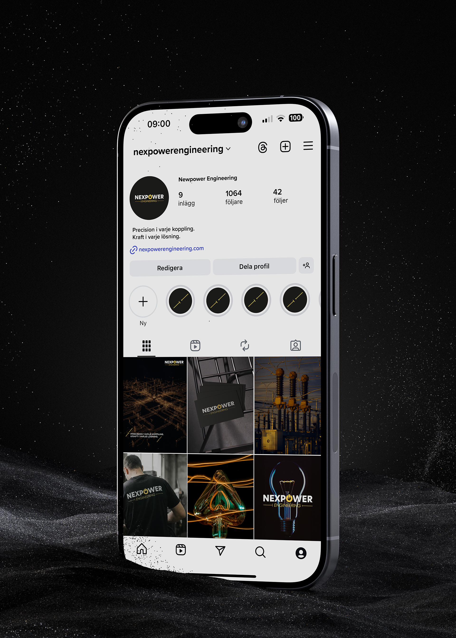 Nexpower Engineering är ett eget företag startat av en bekant till mig, med fokus på konsulttjänster inom el och energi. När företaget tog form fick jag i uppdrag att utveckla en visuell identitet som speglar just den känslan —energi, tydlighet och pålitlighet.